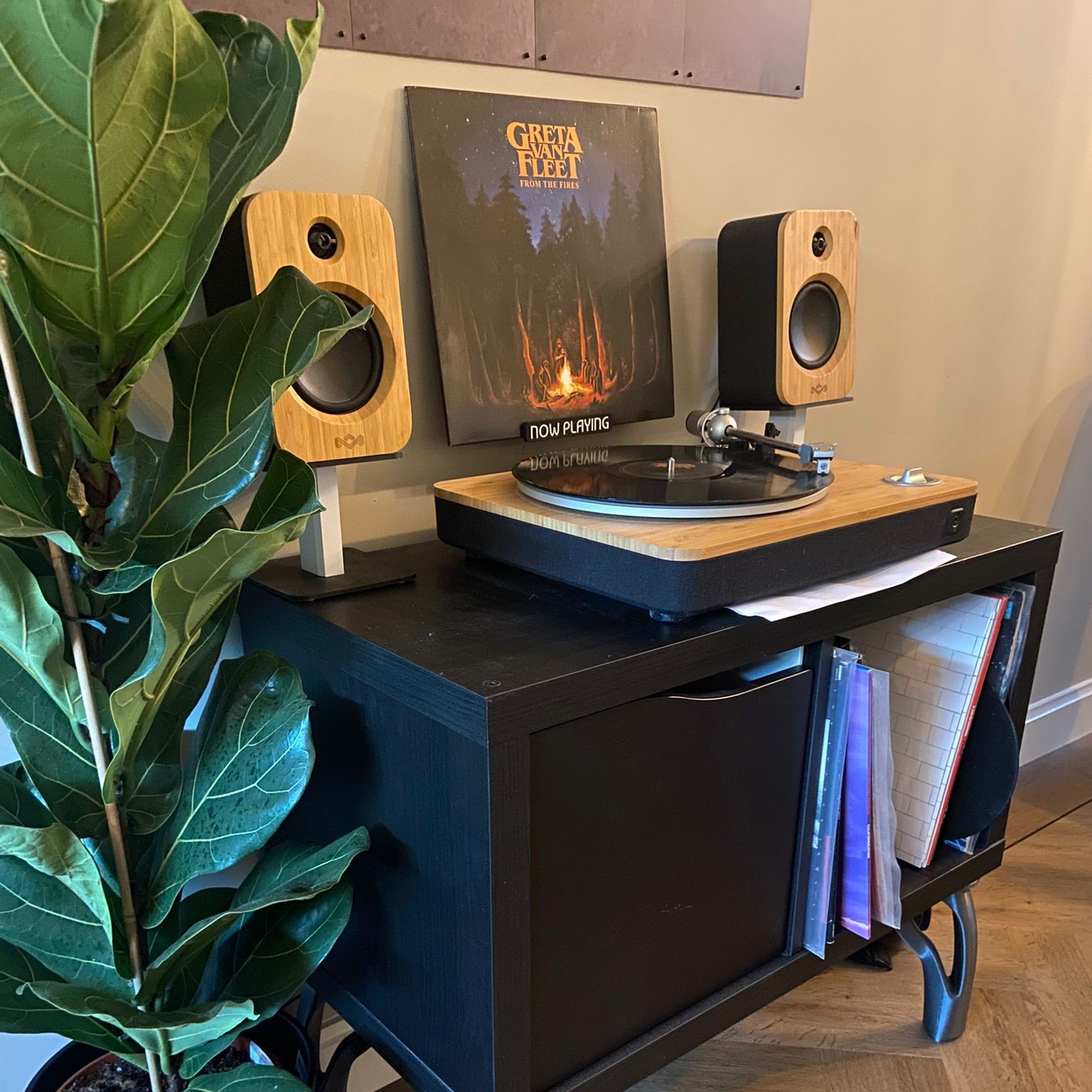Deze moderne wanddisplay is ontworpen voor het stijlvol presenteren van je favoriete vinylplaten. Elke set bestaat uit 4 houders ieder goed voor het presenteren van 1 vinylplaat en is ideaal voor muziekliefhebbers die hun collectie een prominente plek willen geven in huis.